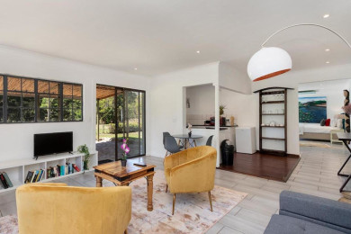 Situé au bord de la magnifique rivière Wemmershoek à Franschhoek, River Flat est un appartement spacieux et élégant, idéal pour 2 à 3 personnes. La chambre dispose d’un lit king-size, et un troisième invité peut dormir confortablement sur le canapé du salon. L’appartement privilégie les grands espaces ouverts, avec un salon équipé d’une cheminée et d’une TV écran plat avec Showmax, ainsi qu’une cuisine ouverte, parfaite pour cuisiner sur place.